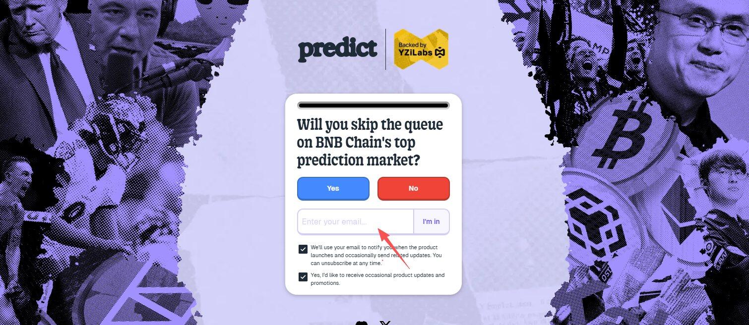 目前 predict.fun 暂未开放,可填写个人邮箱来获得早期访问资格(链接:https://predict.fun/welcome)。