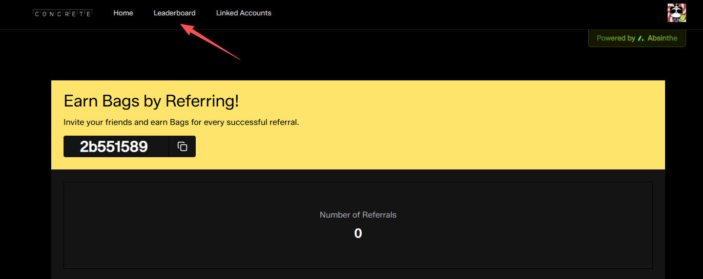 STEP 3. 点击“Leaderboard”栏目,查看个人邀请码与个人积分。